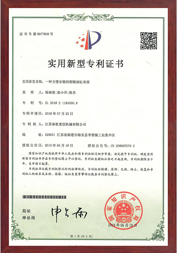 一種方便安裝的側(cè)輥油缸承座專利